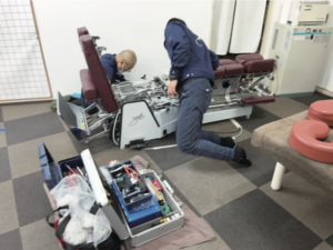 先日、おだ整骨院の施術で大活躍中の骨盤矯正専用ベッド「トムソンベッド=トムソンテーブル」のメンテナンスをしてもらいました。